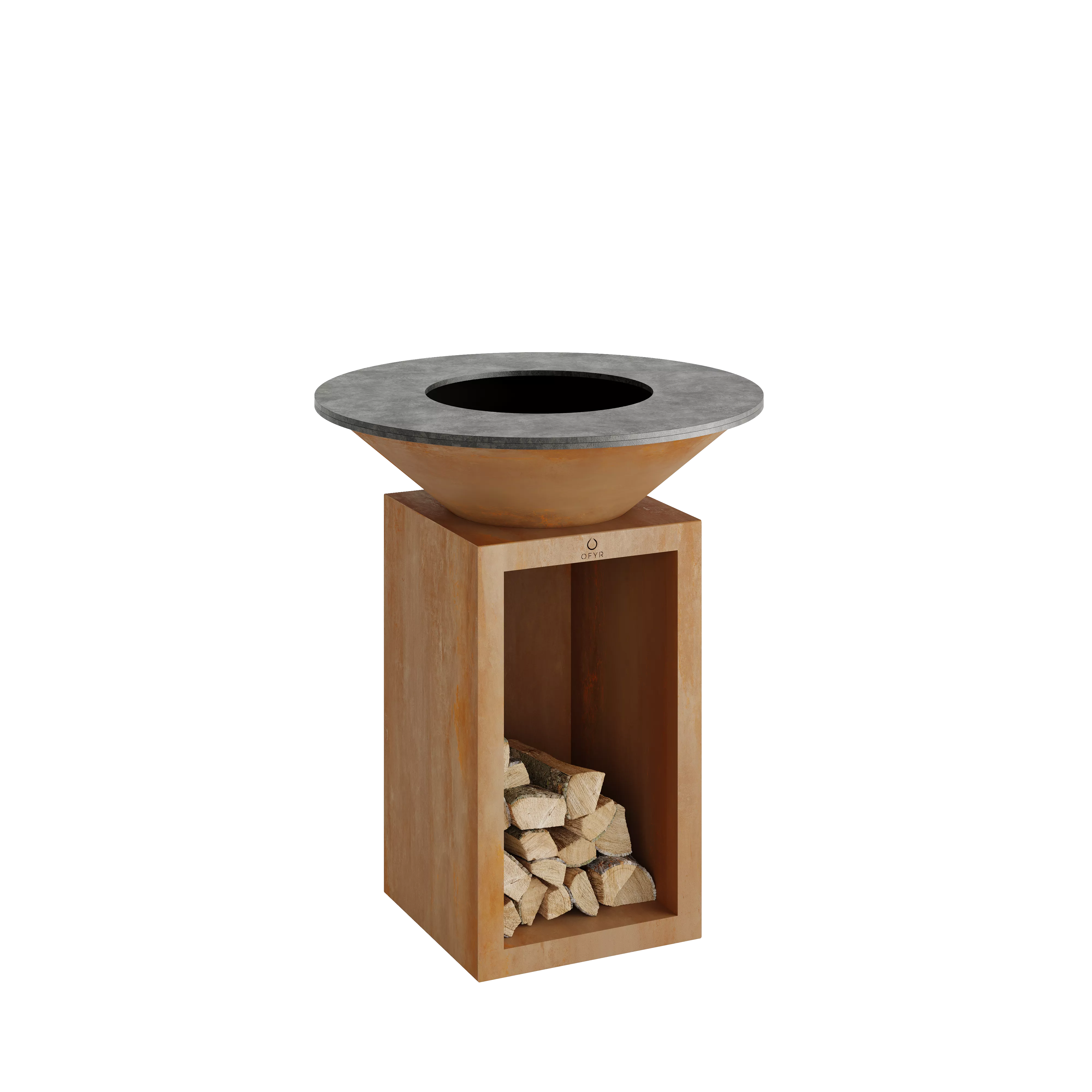 Ce modèle reprend tout le style et la simplicité de OFYR, avec le confort d’un rangement pour le bois en supplément. Ce modèle existe en taille 85 et 100 cm et se combine